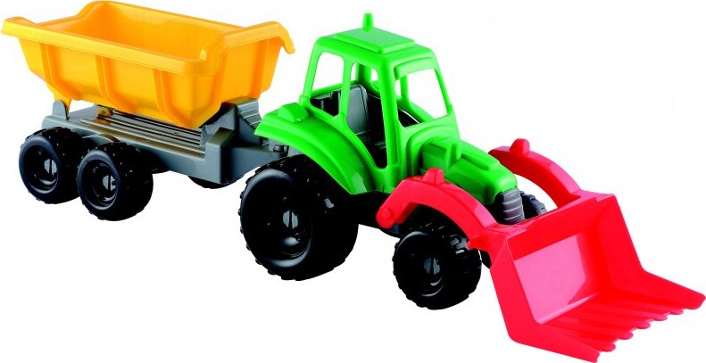 Legetøjstraktor Med Frontlæsser Og Trailer