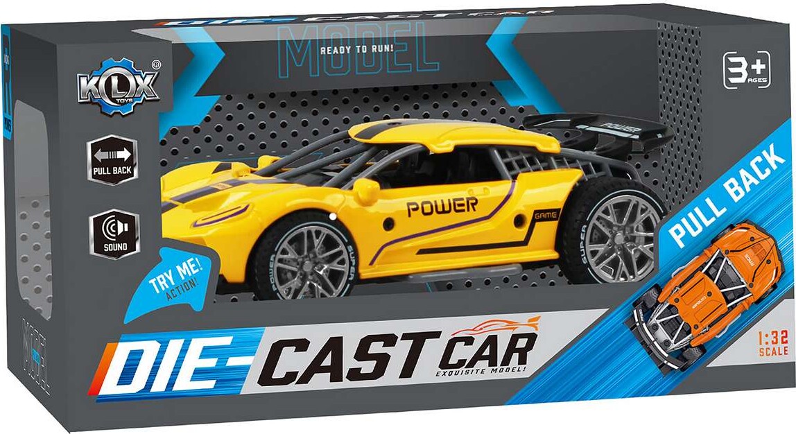 Die-cast Pull Back Car W/sound & 'try-me', Yellow - Klx Toys