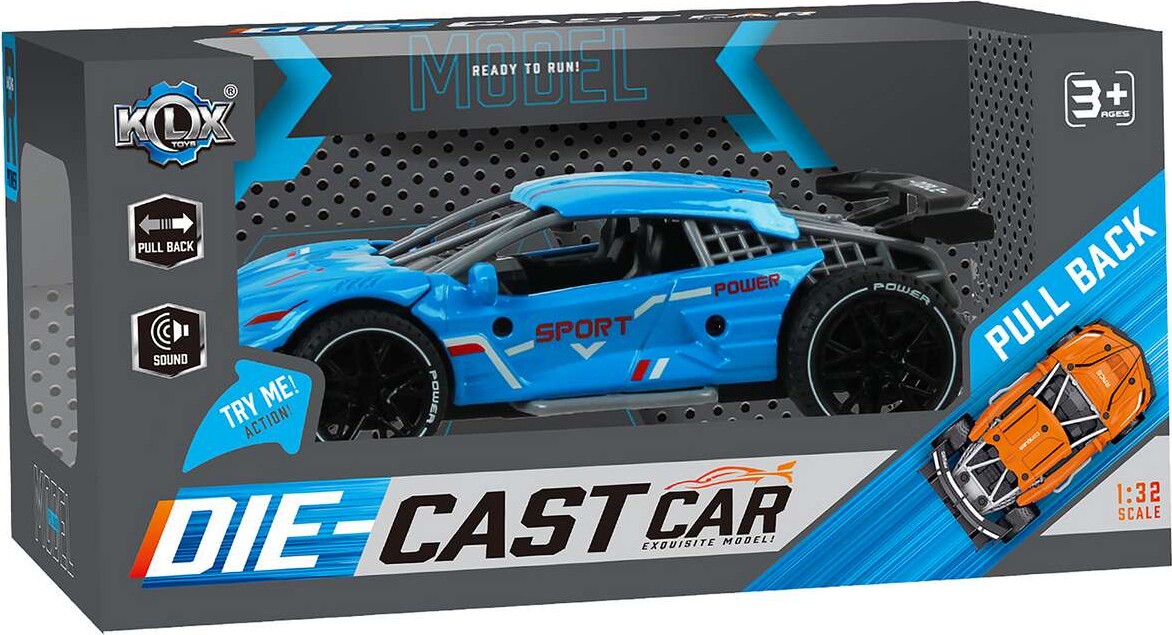 Die-cast Pull Back Car W/sound & 'try-me', Blue - Klx Toys
