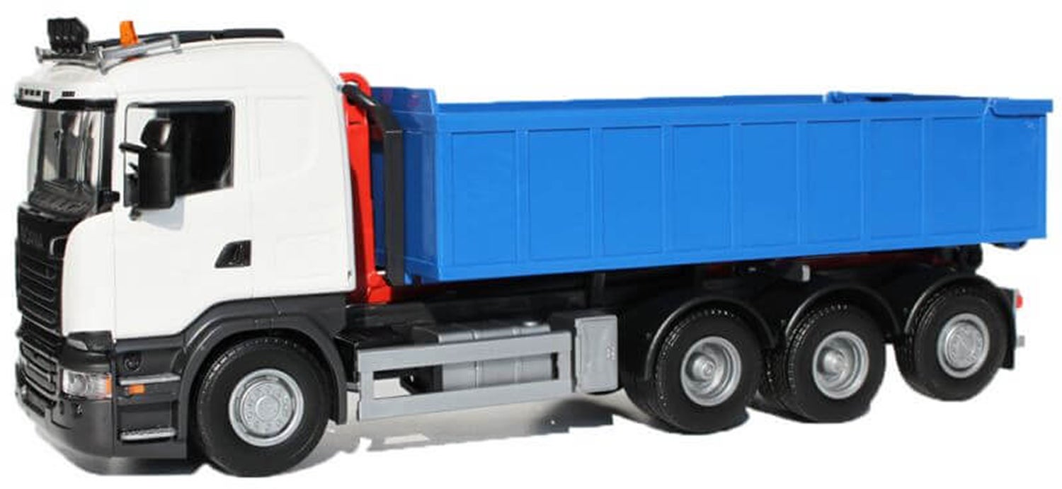 Tip grus og transporter det med en Scania lastbil med lav anhænger fra Emek! Dette er en kopi af den rigtige Scania lastbil i skalaen 1:25. Det rummelige lad kan sættes på jorden, når du laster. Perfekt til leg indendørs eller i sandkassen. Anbefalet alder: Fra 3 år.