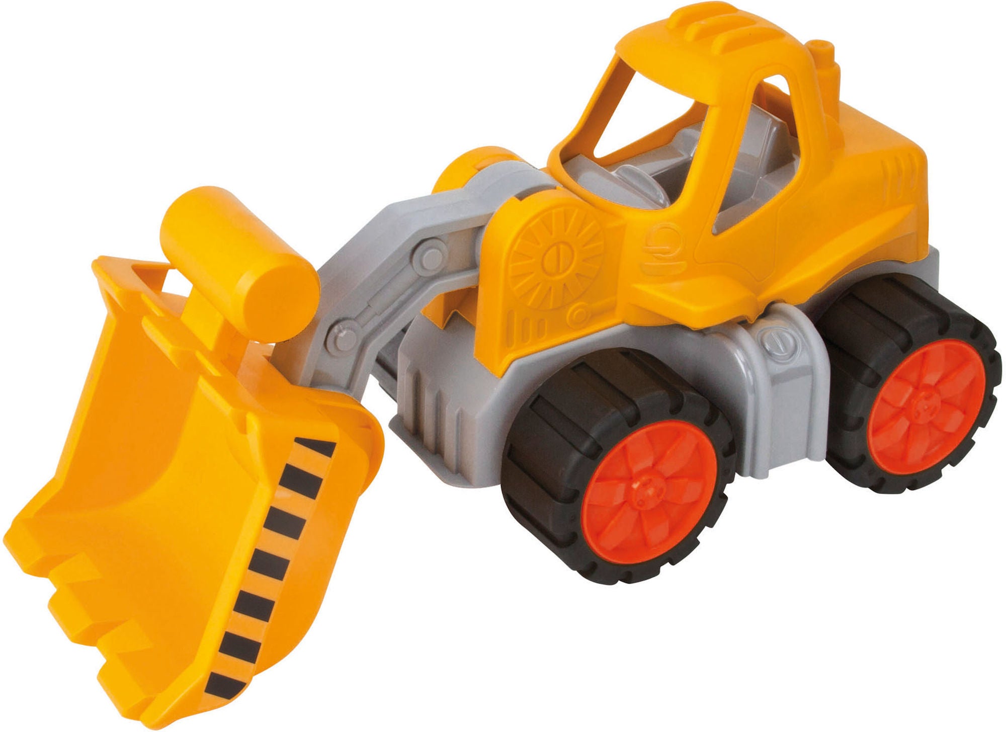 En robust hjullæsser fra BIG Power Worker. Hjullæsseren har en stor, bevægelig skovl med en lastvolumen på 0,5 liter. Køretøjet er lavet specielt til små børns hænder, så dit barn let kan køre hjullæsseren og vippe skovlen. De bløde dæk gør legetøjet passende til både uden- og indendørslege. Legetøjet rengøres let i rindende vand.