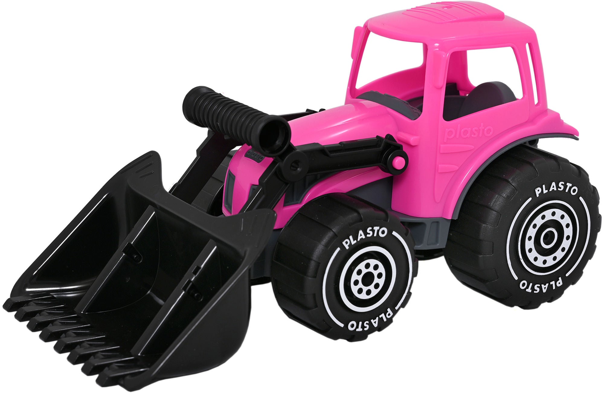 Plasto Traktor m. Frontlæsser, Lyserød/Sort