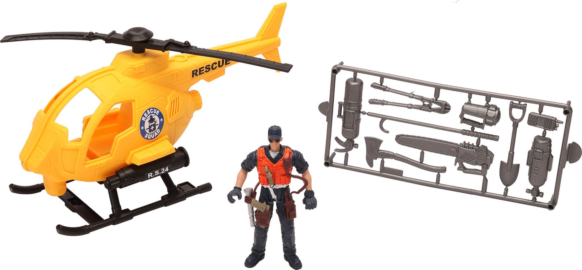 Et sjovt legesæt fra Rescue Squad. I dette sæt får du en helikopter, en figur og forskellige redskaber.