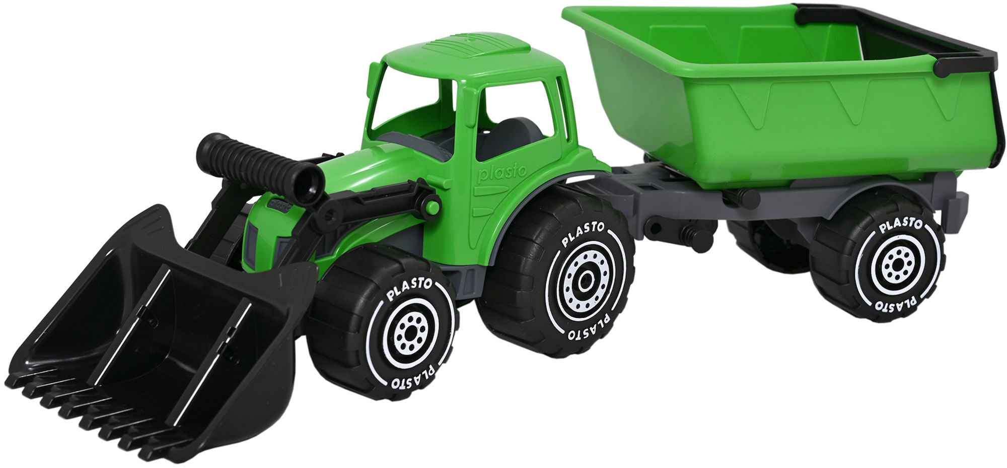 Plasto Traktor m. Frontlæsser & Anhænger, Grøn/Sort
