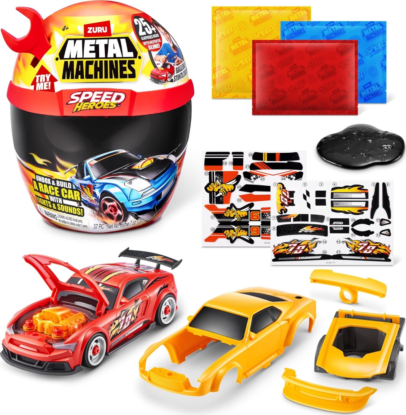 Metal Machines - Speed Heroes Hjælp er det ultimative overraskelseslegetøj for børn, der elsker fart og action. Denne fantastiske hjelm kommer fra det populære Zuru brand, kendt for deres innovative og sjove legetøj. Hjelmen er designet til at give børnene en autentisk oplevelse, mens de udforsker deres fantasi og skaber deres egne racerløb. Hjelmen er ikke kun et stilfuldt tilbehør, men også en del af et større univers af Metal Machines, hvor børn kan samle forskellige køretøjer og tilbehør. Den farverige og detaljerede design gør hjelmen til et attraktivt valg for både drenge og piger, som ønsker at træde ind i racerverdenen. Hver hjelm indeholder overraskelser, der gør legene endnu mere spændende og unikke. Med Metal Machines - Speed Heroes Hjælp kan børnene skabe deres egne historier og udfordre vennerne i spændende races. Det er en perfekt gave til fødselsdage, højtider eller blot som en sjov overraskelse. Materialet er holdbart og sikkert, så forældre kan være trygge ved at lade deres børn lege med dette produkt. Giv dit barn muligheden for at blive en del af den hurtige og actionfyldte verden med Metal Machines - Speed Heroes Hjælp!