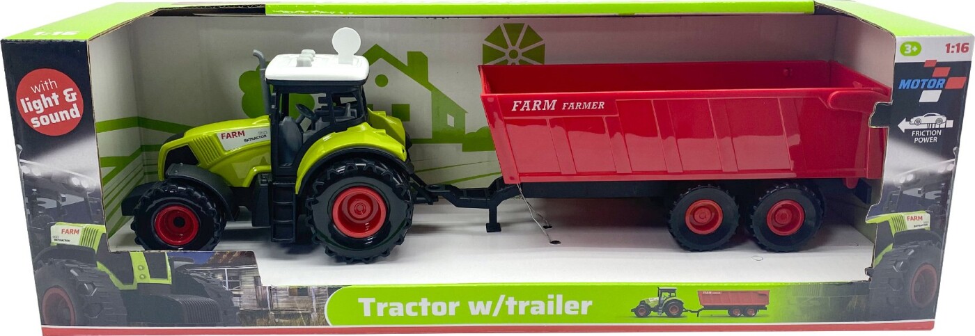 Legetøjs Traktor Med Vogn - Lys Og Lyd - 1:16