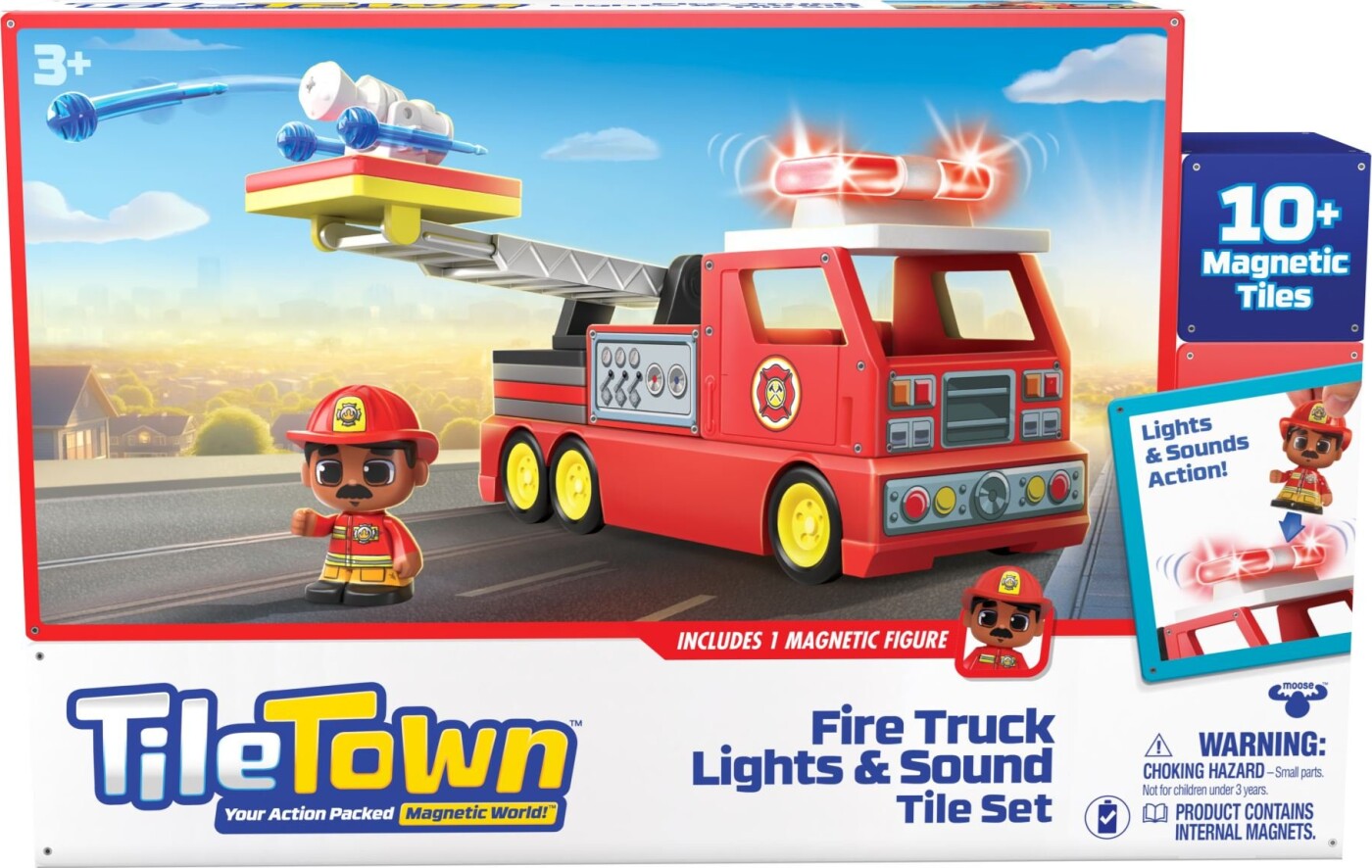 Tile Town - Brandbil, Magnetisk Bygge- Og Legesæt Med Lys Og Lyd