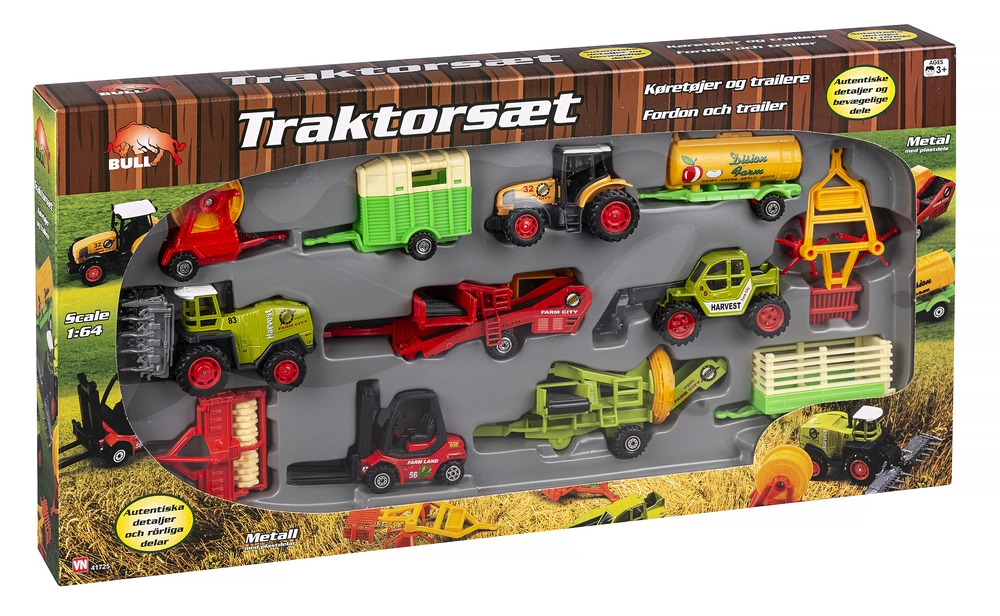 Sæt med køretøjer og anhængere Metal/plast. I alt 12 regulære dele.