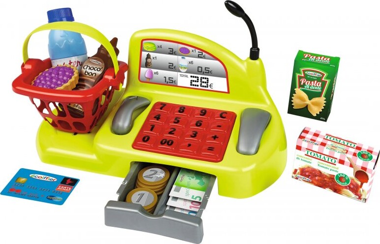 Kasseapparatet legetøj i 26 dele er den perfekte gave til de små, der elsker at lege købmand eller kassemedarbejder. Dette farverige sæt inkluderer alt, hvad dit barn behøver for at skabe sin egen butik, fra penge og varer til et funktionelt kasseapparat. Med dette legetøj kan børnene lære om tal, penge og handel på en sjov og interaktiv måde. Kasseapparatet er designet til at være både holdbart og sikkert for børn. De bløde kanter og lette materialer gør det til et ideelt legetøj for de mindste. Børn kan bruge timevis på at spille rollelege, hvor de kan tage imod kunder, scanne varer og give byttepenge. Dette stimulerer ikke kun deres sociale færdigheder, men også deres kreativitet og fantasi. Med 26 dele i sættet kan børnene udforske forskellige scenarier og lege, hvilket holder dem engagerede og underholdte. Kasseapparatet er perfekt til både individuel leg og leg med venner, hvilket gør det til et uundgåeligt tilbehør i ethvert legeområde. Giv dit barn mulighed for at udvikle sine færdigheder og have det sjovt samtidig med dette fantastiske kasseapparat legetøj!