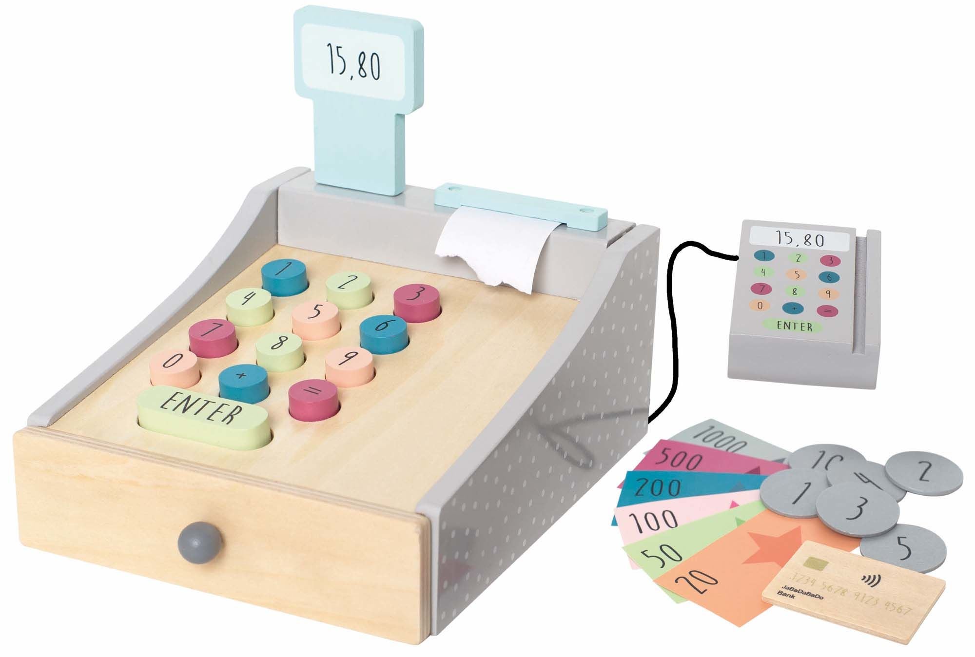 Jabadabado Kasseapparatet er det perfekte legetøj til dit barns legeplads, hvor kreativitet og fantasi får frit spil. Dette farverige kasseapparat er designet til børn, der elsker at lege købmand eller restaurant, og det skaber en sjov og lærerig oplevelse. Med dets realistiske funktioner, såsom knapper, en scanner og en lille skuffe til penge, kan børnene fordybe sig i rollespil og udvikle deres sociale færdigheder. Det er ikke kun underholdende, men også en god måde for børn at lære om tal, penge og grundlæggende matematik. Jabadabado Kasseapparatet er fremstillet i høj kvalitet og er både holdbart og sikkert for børn at lege med. Det farverige design tiltrækker opmærksomhed og gør legene mere livlige. Kasseapparatet er ideelt til legeaftaler, hvor venner kan lege sammen og tage på opdagelse i en fantasiverden. Det fremmer samarbejde og kommunikation mellem børnene, hvilket er essentielt for deres sociale udvikling. Giv dit barn muligheden for at udforske og lære gennem leg med Jabadabado Kasseapparatet et must-have i enhver legestue.