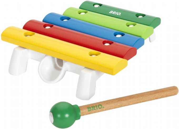 Skab et mesterstykke med denne xylofon. Xylofonen har fem forskellige toner til at skabe en melodi ud fra. Der er en smart opbevaring underneden til trækøllen. Med BRIOs instrumenter kan hele familien udforske musikkens verde