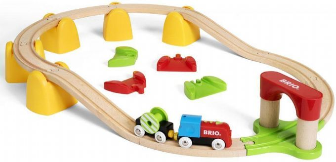 Wow! Så meget sjov på én gang for de yngste lokomotivførere. Start med at bygge en bane med bjerge og tunnellen, og kør op og ned og gennem tunnellen med toget. Tryk på knappen med pilen ovenpå toget, så begynder det at køre selv. Vognen med drejehjulet g