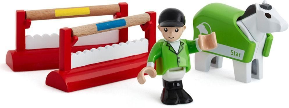 Pres dette rytterhold til det yderste. Denne udfordring er ikke noget at spøge med. Spring højt over forhindringerne, så du ikke river dem ned. Hestens tæppe kan tages af, så rytteren kan komme ind.