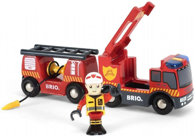 Vær brandmand for en dag. Hop ind i brandbilen, der har slangevogn, og tryk på knappen for sirener og lys. Glem ikke at slå advarselsskiltet op, når du er kommet frem til ulykkesstedet.