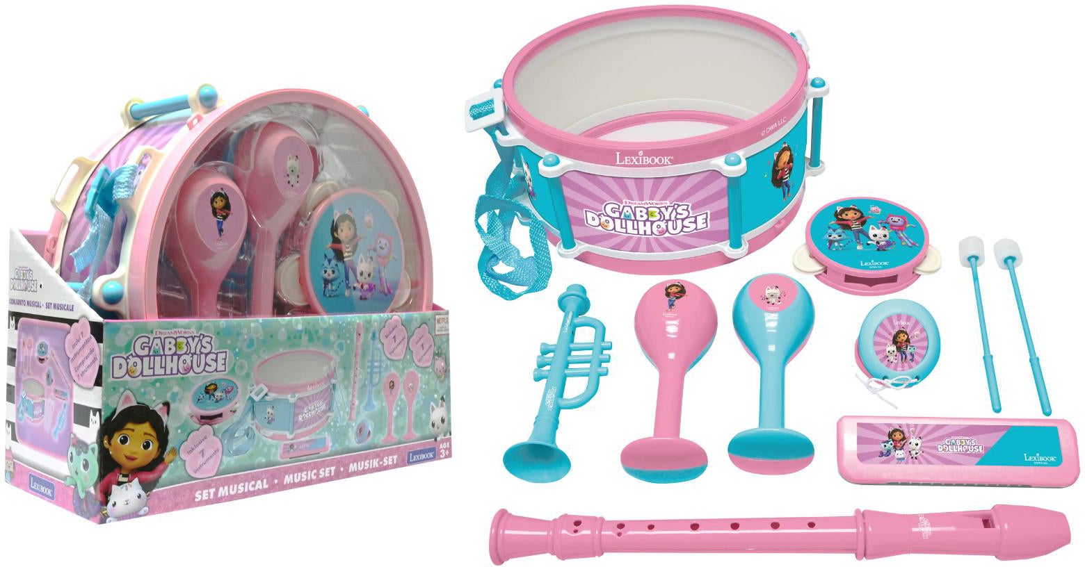 Instrumentsæt fra Gabby's Dollhouse med et sødt design. Perfekt til den lille musiker. - Indeholder: 1 tromme, 2 maracaer, 1 kastagnetter, 1 tamburin, 1 mundharmonika, 1 blokfløjte, 1 trompet. - Start den musikalske rejse med dette magiske sæt! - Let at opbevare. - Let at rengøre med en fugtig klud. - CE-mærket. - Anbefalet alder: Fra 3 år. - Plastik.