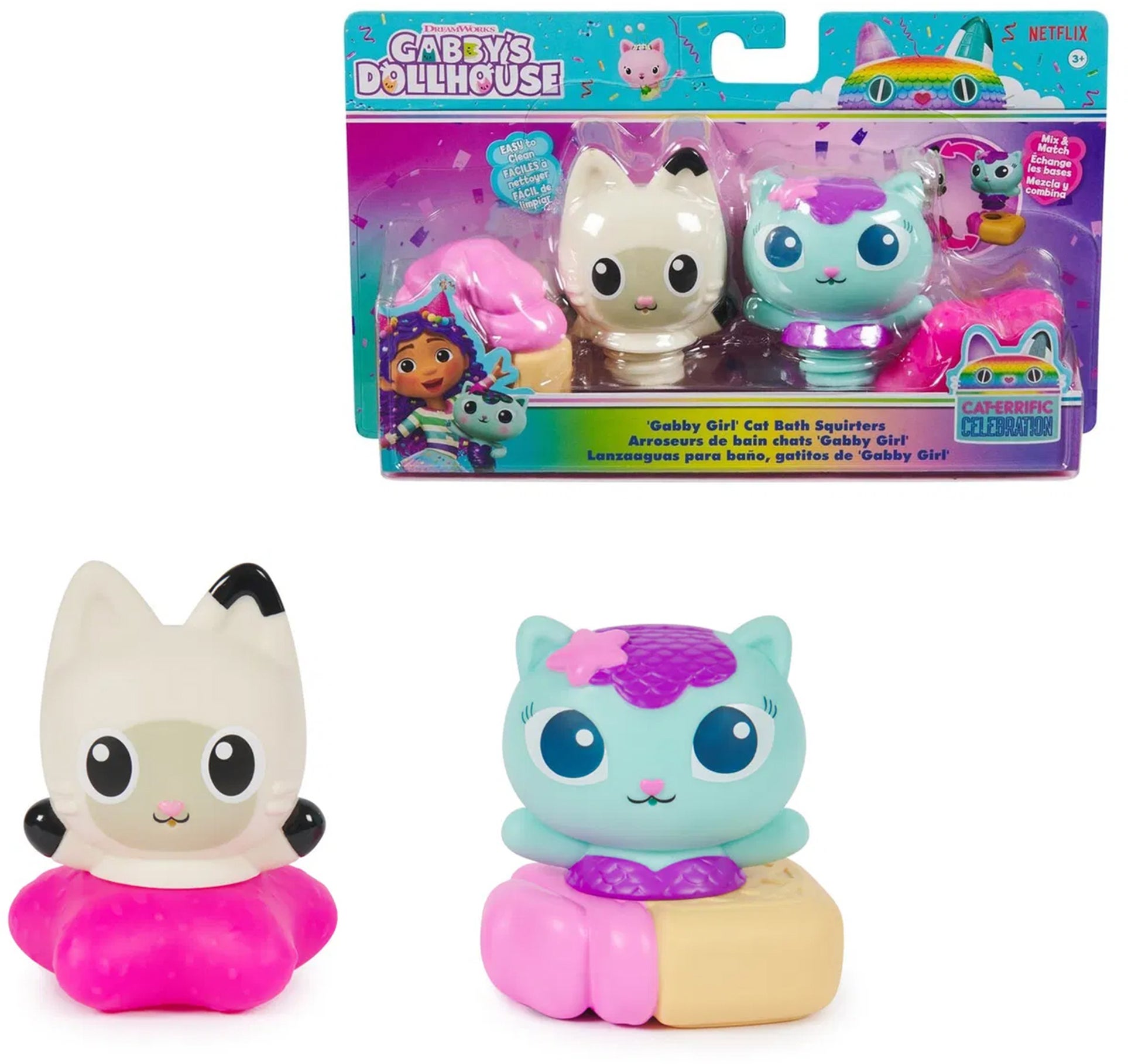 Badesprøjtere fra Gabby's Dollhouse med et inspirerende design. De har en vandsprøjtende funktion. Perfekte til en sjov stund i badet. - Indeholder: 2 badesprøjtere. - Miks og match. - Tryk og klem. - Perfekt til udvikling af finmotorikken. - CE-mærket. - Anbefalet alder: Fra 3 år. - Plastik.