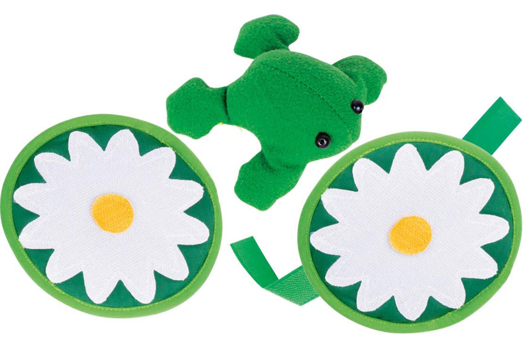 Med dette søde kastespil kan selv små børn lære at kaste og gribe på en overskuelig måde. I tager åkanden på hånden og kaster med frøen!Gør det sjovere at få styr på boldøjet.