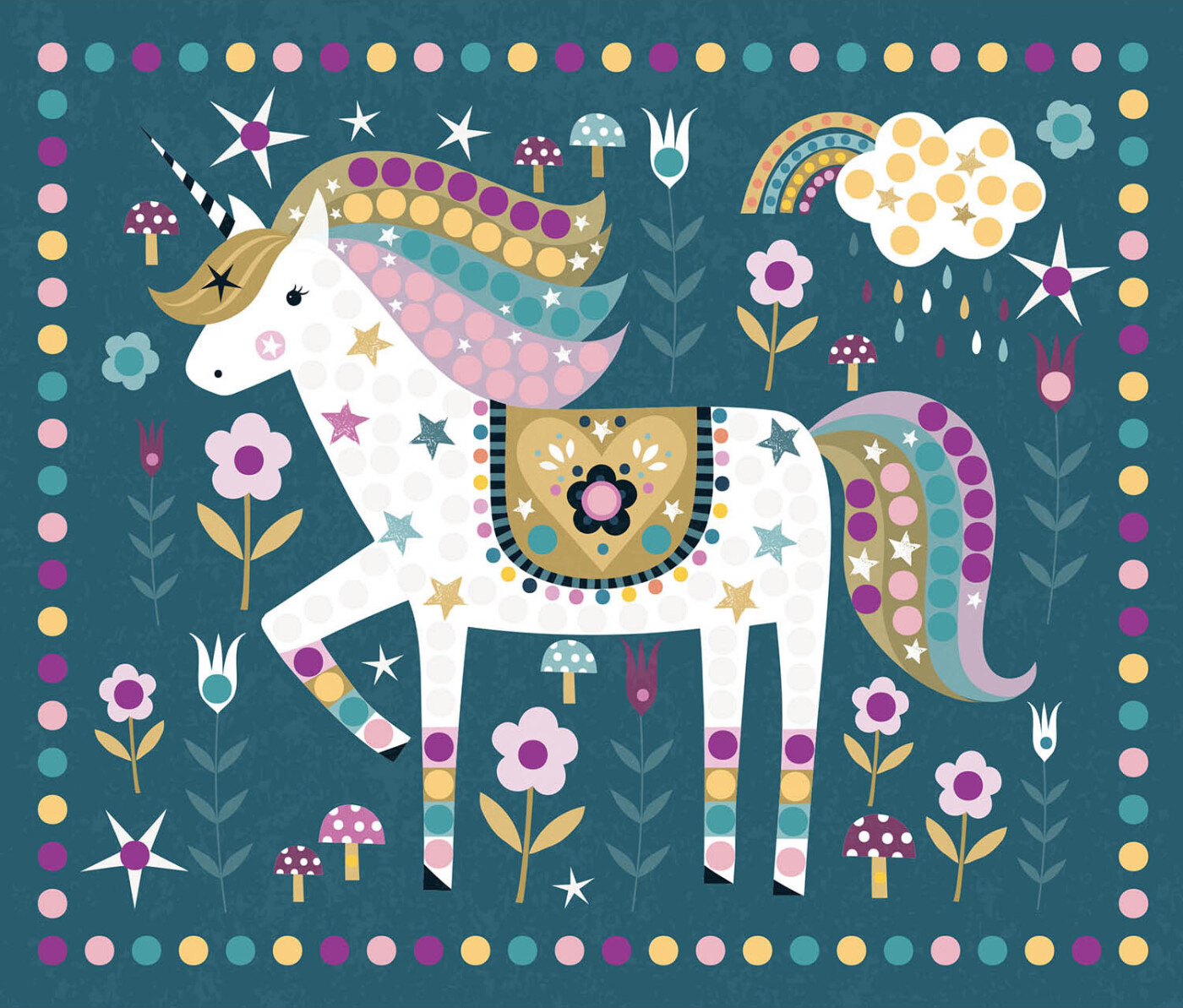 Et kreativt sæt med to flotte billeder med enhjørningmotiv til at dekorere med hundredvis af...