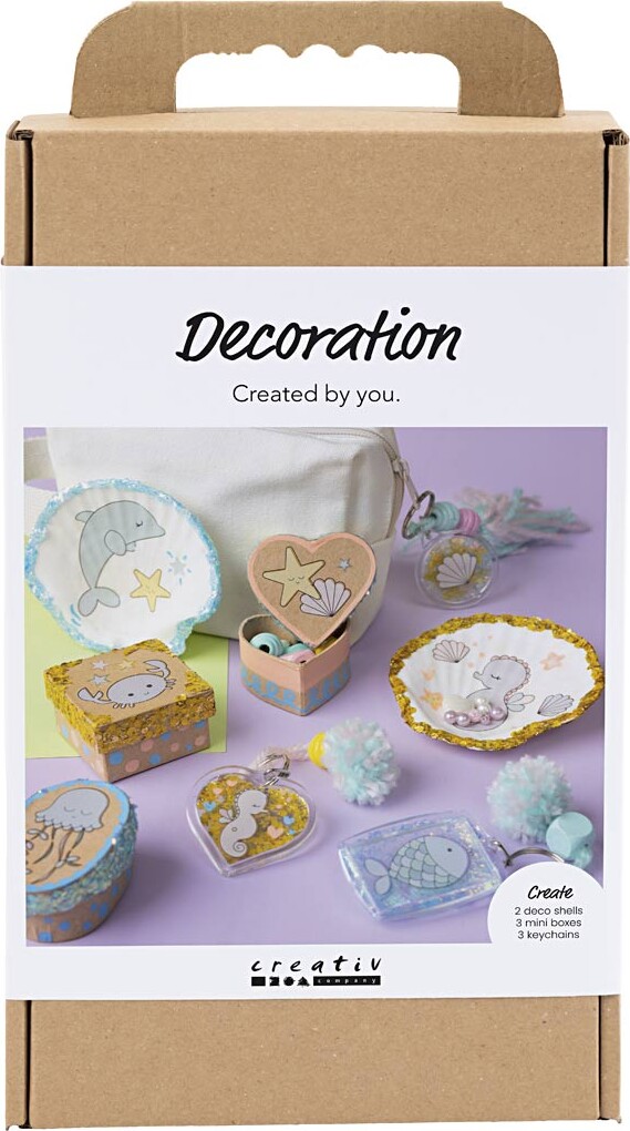 Kreativt Sæt - Dekoration - æsker - Muslingeskaller - Nøgleringe - Pastelfarver