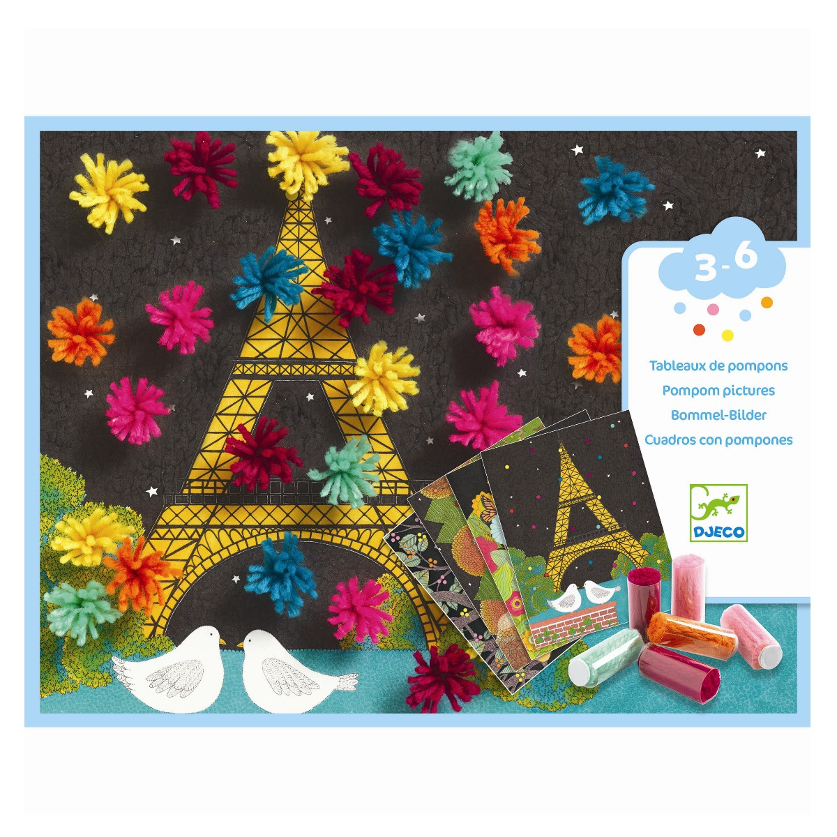 Vidste du, at pompomer kan meget mere end vęre en kvast på huen eller legetųj til katten?Her kan I designe et helt festfyrvęrkeri over Paris' nattehimmel. Eller lave pomponer som blomster på frugttręet. I får 4 store kort på 17 cm, der tręnger så vęldigt til pomponer lavet af dit barn. I får garn i forskellige farver med i ęsken. Og I kan sagtens bruge garnrester, hvis I har noget liggende fra gamle hękle/strikkeprojekter/krea-projekter.Legen er en nem måde at få små kreative succesoplevelser for dit barn. Det styrker selvtilliden.
