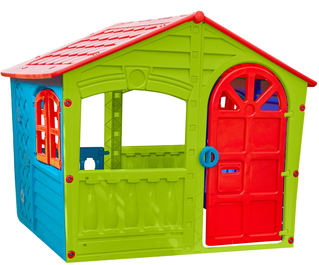 The House of Fun Plast Legehus, Grøn/Blå/Rød