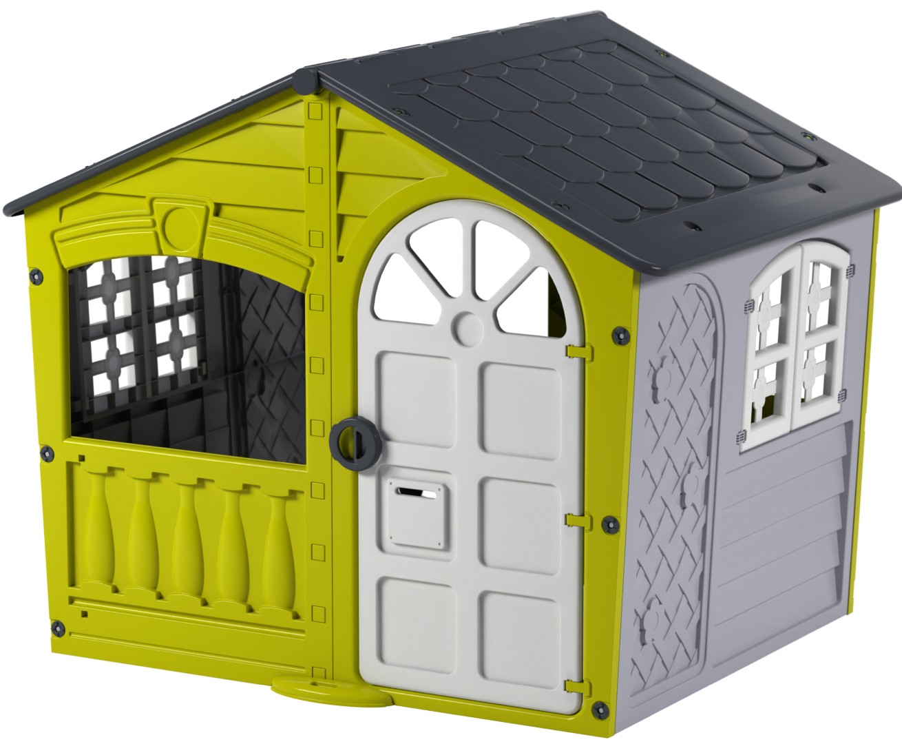 Vi præsenterer House of Fun fra PalPlay! Dette sjove og robuste legehus giver børn timevis af sjov og leg. Med sit rummelige design kan du udstyre House of Fun og forvandle det til et drømmehjem - hvorfor ikke sætte et bord og stole ind, så de små kan arb