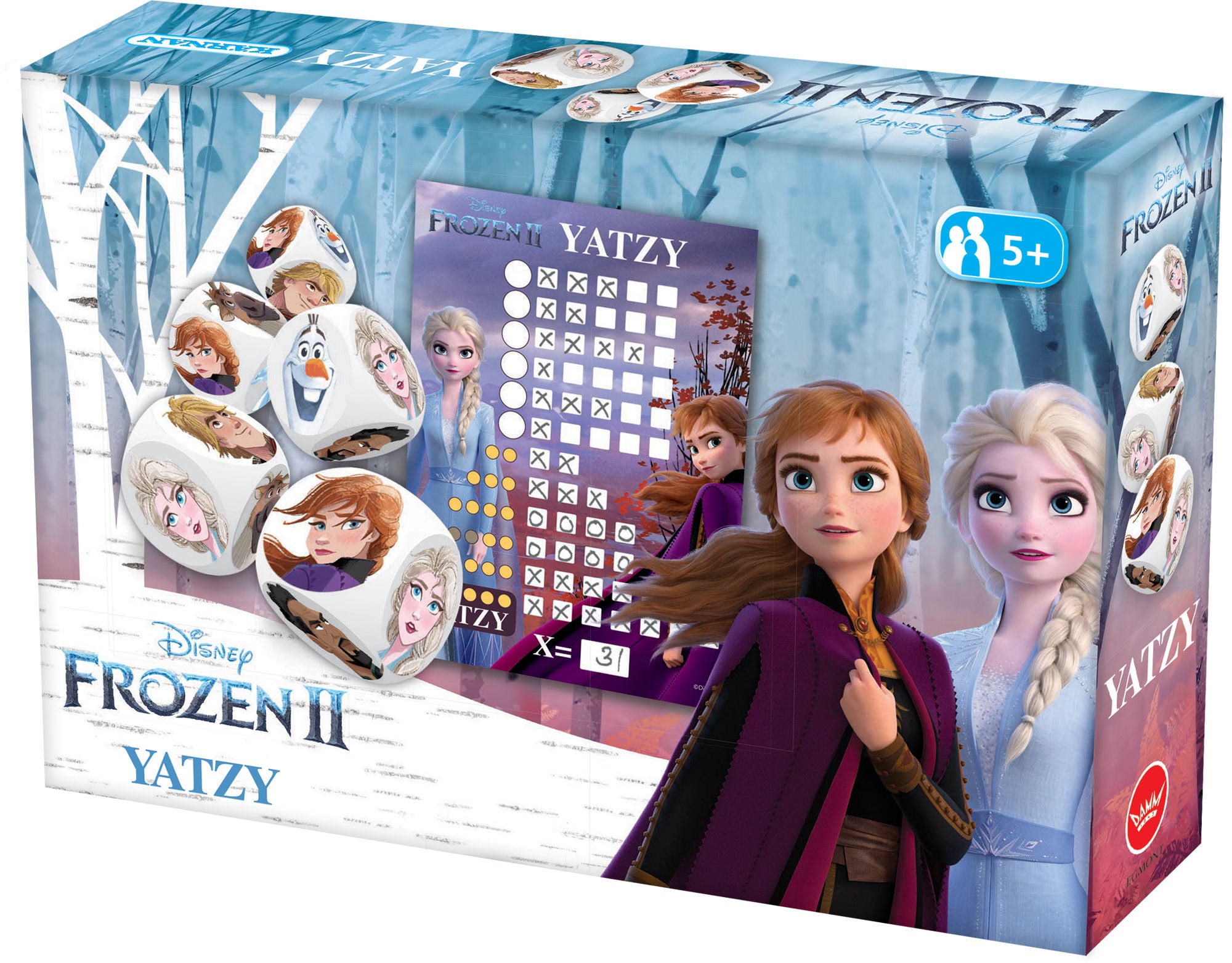 Nu kan du udfordre dine kammerater i Yatzy, sammen med vennerne fra Disneys Frost 2. Spillet er ligesom normal Yatzy med den forskel, at cifrene på terningerne er byttet ud med karakterer fra filmen. Anbefalet alder: Fra 5 år.