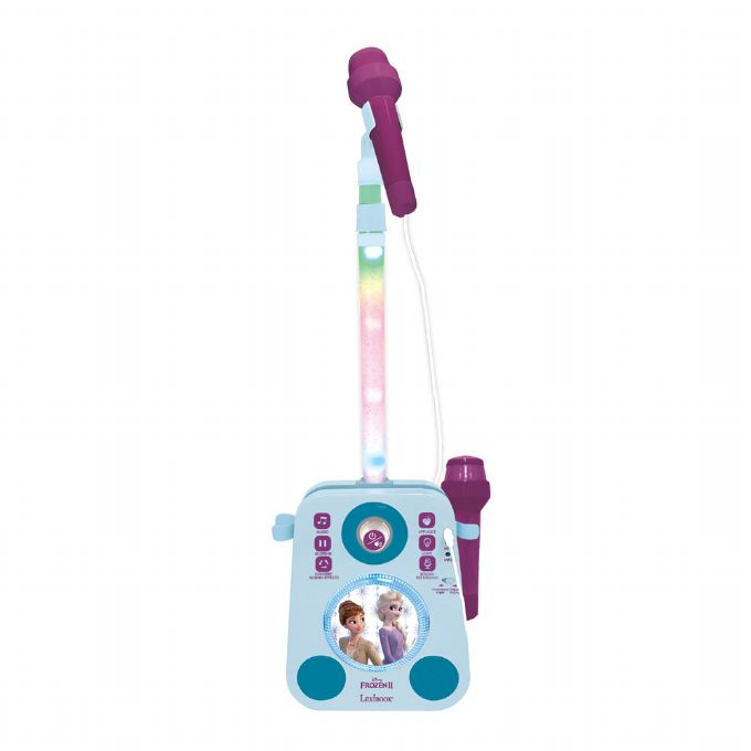 En dejlig musikalsk højttaler med Frozen belysning til at synge i timevis alene eller i duet med sine to mikrofoner! Røret og midten af højttaleren lyser op, og demomelodier er inkluderet til at synge og danse. Barnet kan endda tilslutte sin egen lydenhed