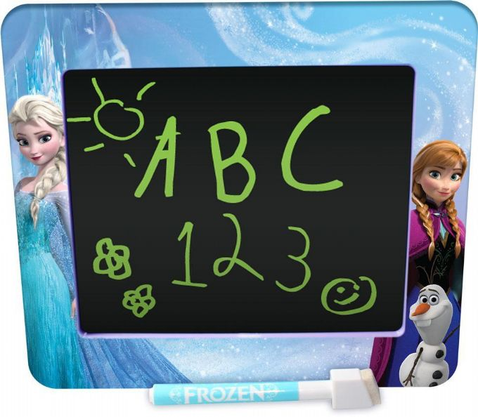 Denne smarte Frost tegnetavle kommer med en helt særlig tusch, der gør alt man skriver og tegner, selvlysende på tavlen, så det kan ses hele dagen og natten. Viskelæder medfølger også. Derudover er der magnet i tavlen, så den også kan hænge på køleskabet.