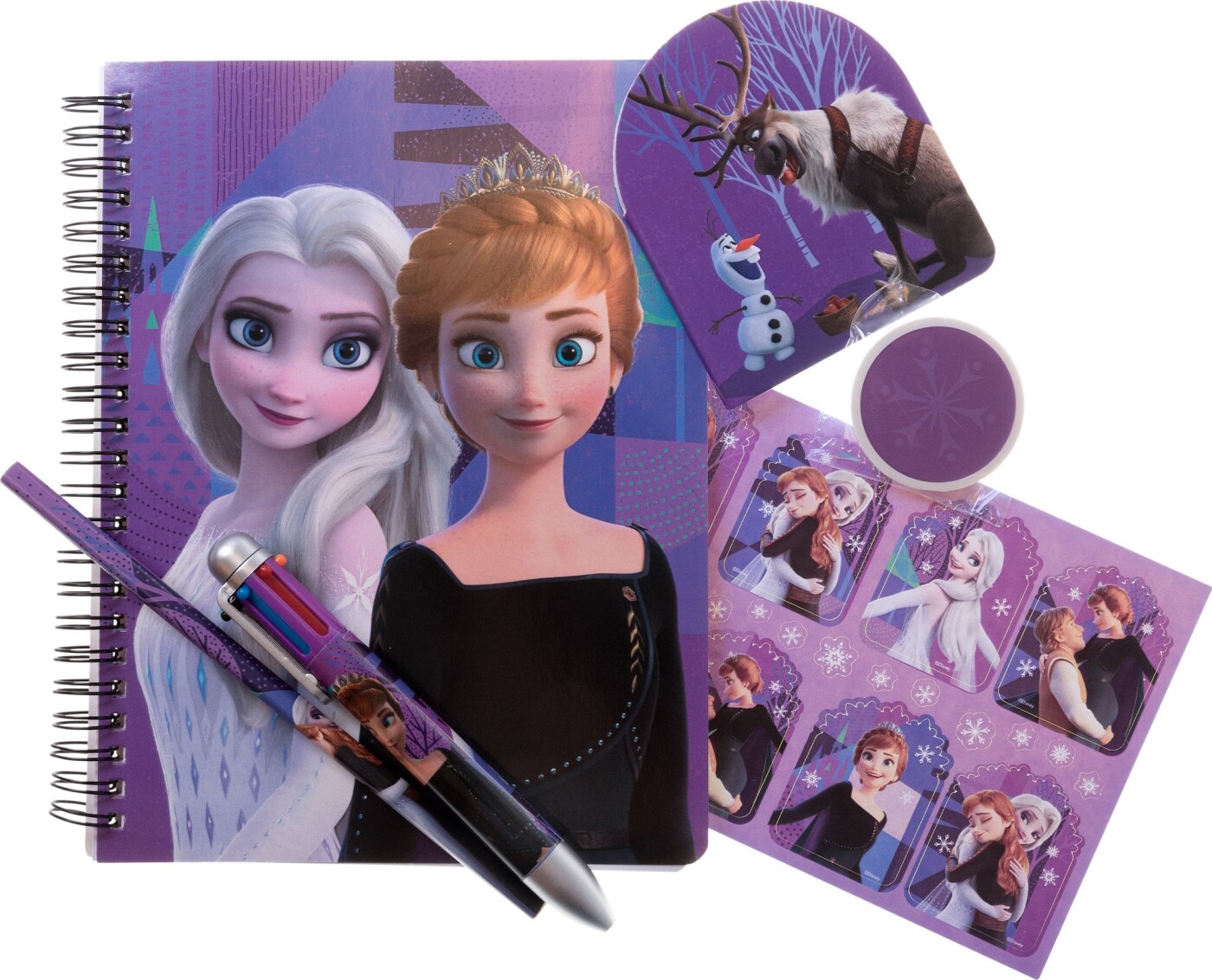 Disney Frost skrivesæt med A5 notesbog, mininotesblok, flerfarvet pen, blyant og klistermærker....