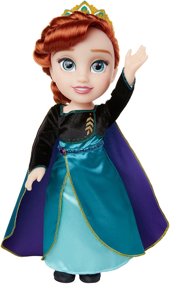 Queen Anna dukke fra Disney Frozen med en smuk kjole. Den har en frisure som dit barn let kan ændre eller flette. Perfekt til timevis af fantasifuld leg. - Perfekt til alle Disney Frozen-fans. - Mål: H 38 cm. - CE-mærket. - Ikke egnet til børn under 3 år. - Anbefalet alder: Fra 3 år.