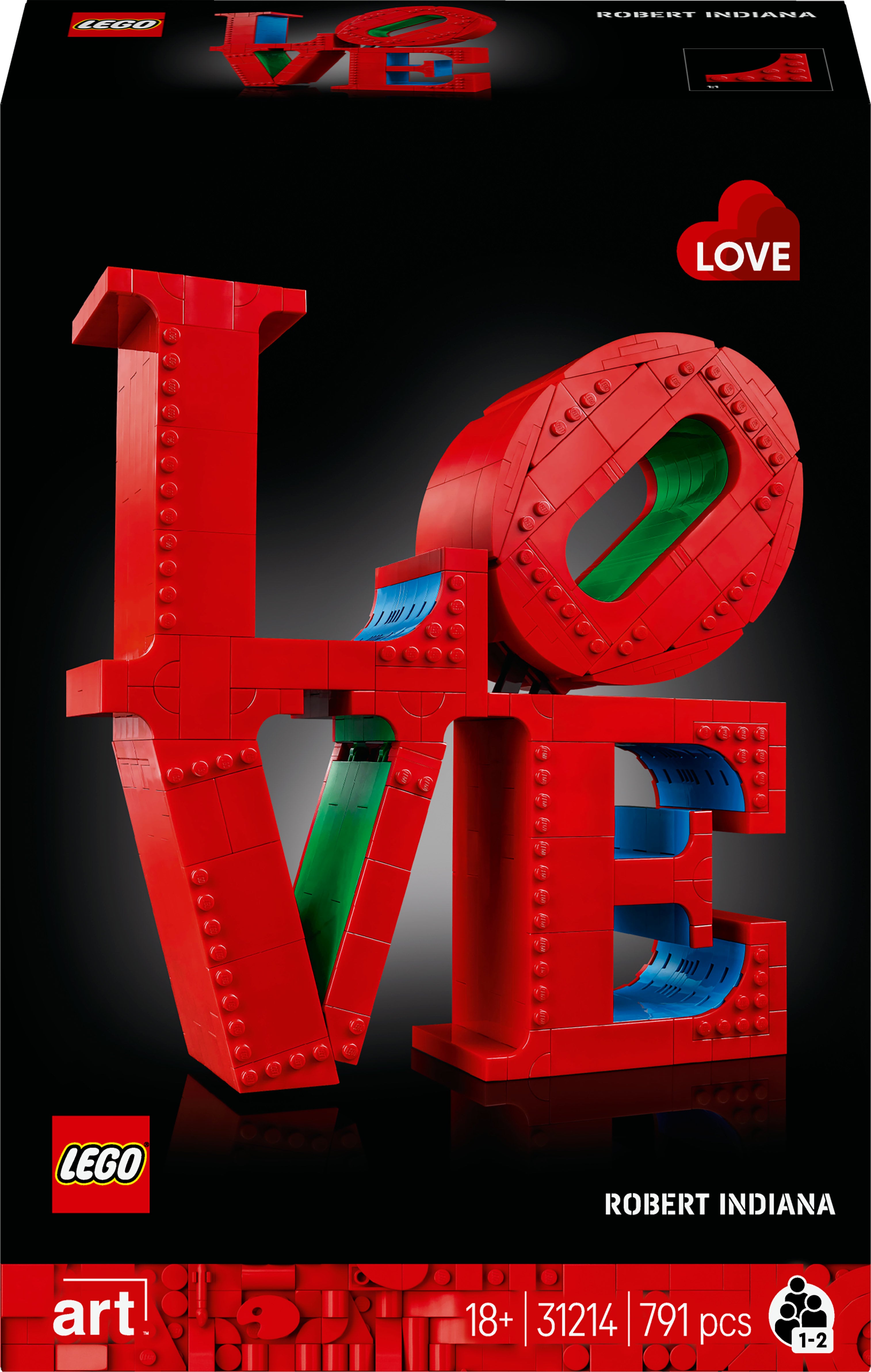 Skab din egen LEGO version af Robert Indianas berømte skulptur med LEGO Art byggesættet LOVE 31214. Den klodsbyggede LEGO model er inspireret af den ikoniske popkunst-skulptur, som fejrer 55-års jubilæum i 2025, og vil være en perfekt gave til par, kunstelskere eller enhver, der gerne vil fejre kærligheden! Robert Indianas LOVE-skulptur er anerkendt over hele verden som et ikonisk symbol med et universelt budskab, og nu kan du udstille den i dit eget hjem. LEGO Art byggemodellen er en virkelighedstro hyldest til designet i Indianas skulptur med de samme livlige røde, blå og grønne farver, og den ser fantastisk ud på et bord, skrivebord eller en hylde i ethvert rum. Byggesættet til voksne er også et afstressende og fordybende projekt, når du bygger denne indretningsgenstand af de 791 LEGO klodser. Der medfølger 2 byggevejledninger, så du kan få en social oplevelse ved at skabe en klodsbygget LOVE-model sammen med en ven eller et familiemedlem. Skab en lille klodsbygget version af Robert Indianas berømte LOVE-skulptur LEGO versionen af LOVE-skulpturen er en imponerende udstillingsgenstand LOVE-modellen i 3D er en virkelighedstro hyldest til virkelighedens ikoniske skulptur Giv den klodsbyggede LOVE-model som gave til valentinsdag eller mors dag Denne idé til boligindretning indeholder 2 byggevejledninger, så flere kan bygge sammen Find flere kunstværker sælges separat i sortimentet af LEGO byggesæt til voksne LEGO modellen med 791 elementer er over 25 cm høj og 25 cm bred