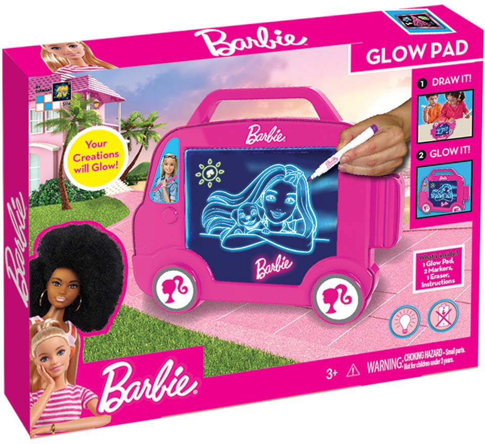 Tegnetavle fra Barbie med 8 skiftende farver. Perfekt til mange timers sjov. - Indeholder: 1 tegnetavle, 2 tusser, 1 viskelæder, 1 brugsvejledning. - 8 skiftende farver. - Tør tavlen af og start forfra. - Motiv fra Barbie. - Lyseffekter. - Slukker automatisk. - CE-mærket. - Anbefalet alder: Fra 3 år. - Batterier medfølger ikke.