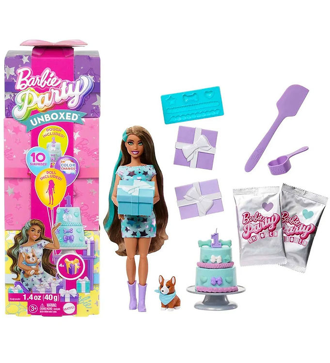 Opdag den fortryllende Barbie Dukke - Party Unboxed Brunette. Denne stilfulde dukke er perfekt til festlige eventyr og inspirerer til kreativ leg med sit glitrende outfit og livlige detaljer.