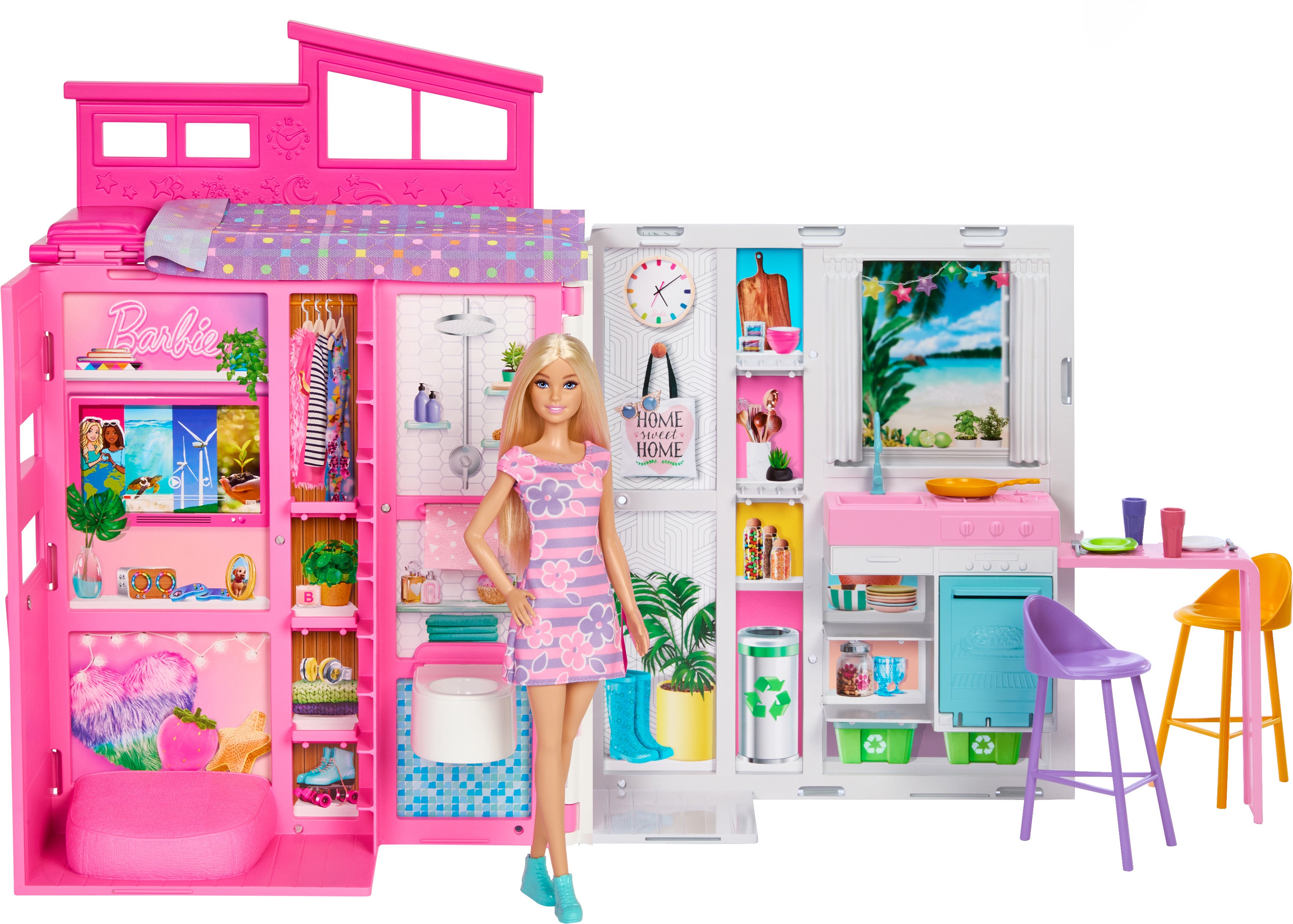 Stort legesæt fra Barbie med en medfølgende dukke og andet tilbehør. Perfekt til timevis af fantasifuld leg. - Indeholder: 1 Barbie-hus, 1 barbiedukke, 11 tilbehør. - 360-graders legeområde. - Fire sjove legeområder. - Kun én dukke medfølger. Andre dukker sælges separat. - Lavet af 70 % ISCC fossilfrit plast. - CE-mærket. - Anbefalet alder: Fra 3 år. - Plastik.