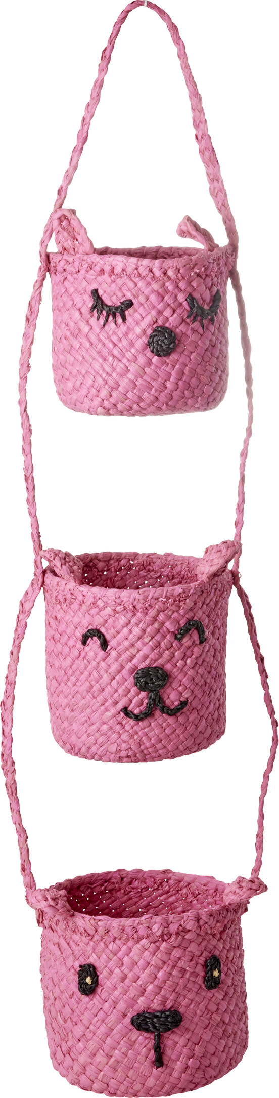 Disse 3 hængende raffiakurve i pink med dyreansigter er den perfekte opbevaring til legetøj, små...