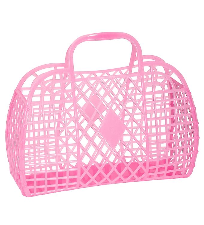 Sun Jellies Stor Foldekurv - Retro - 37x30x11 cm - Neon Pink
