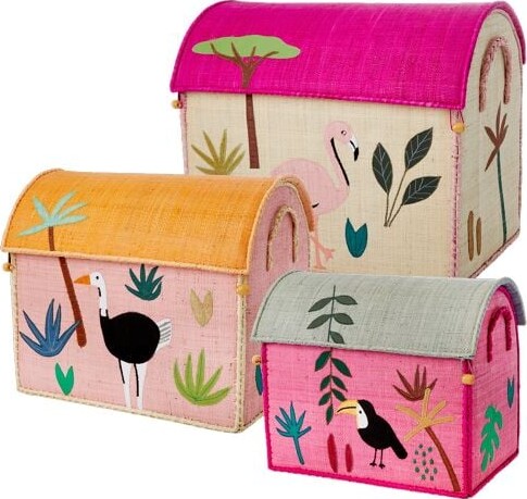 Rice - Kurvehus Sæt Til Opbevaring - Pink Jungle - 3 Stk