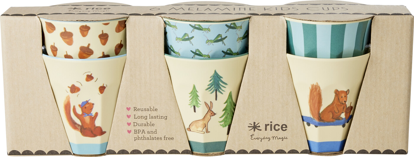 Rice - Melamine Cups With Happy Forest Prints - Blue - Small