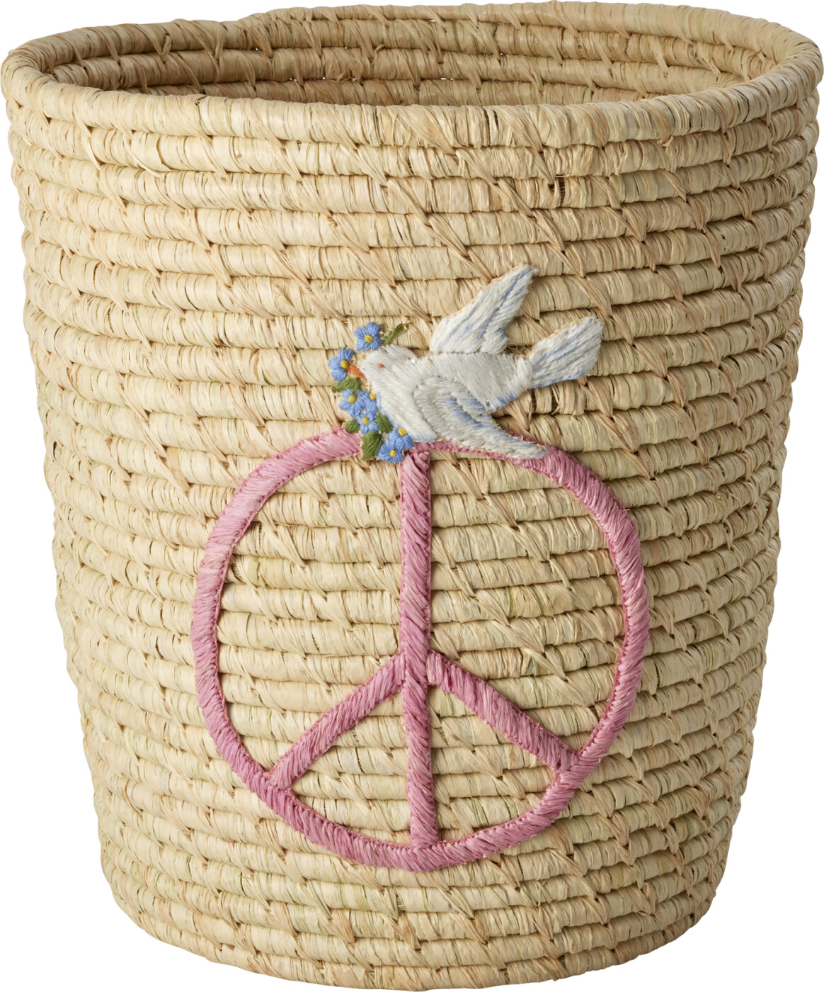 Rice - Round Raffia Basket - Peace And Dove Embroidery
