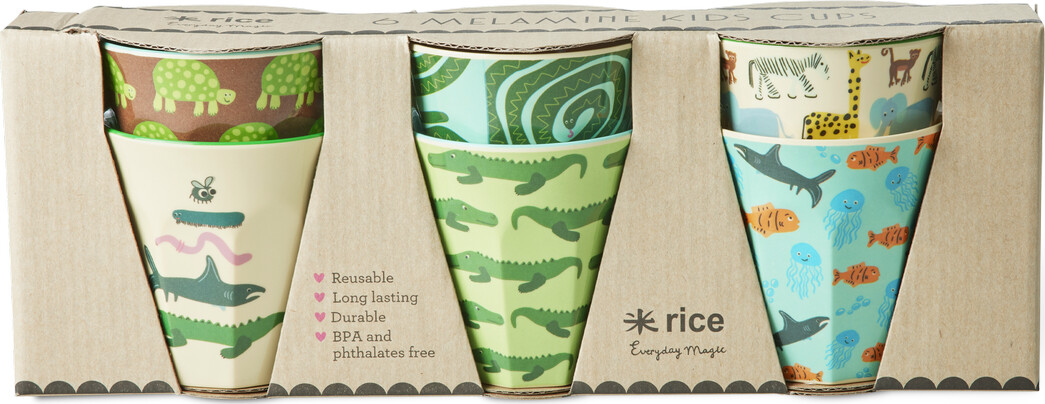 De populære lille rice melaminkop til børn med dyretema. Melamin er holdbart og ideelt til...