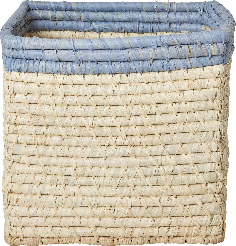 Rice - Raffia Basket Without Handles In Nature With Blue Border - 20 Cm X 20 Cm X 20 Cm - Natural With Blue Border