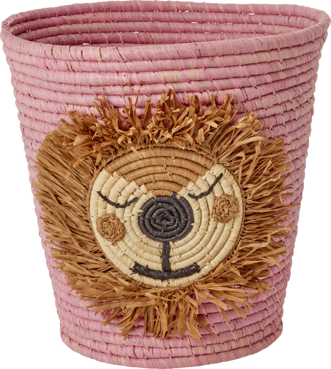 Den sødeste, lyserøde, runde kurv med en brun manke og et løveansigt håndlavet af det...