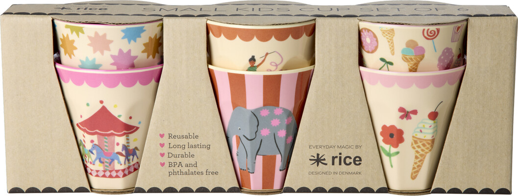 Rice - Melamine Cups With Fun Fair Prints - Pink - Small