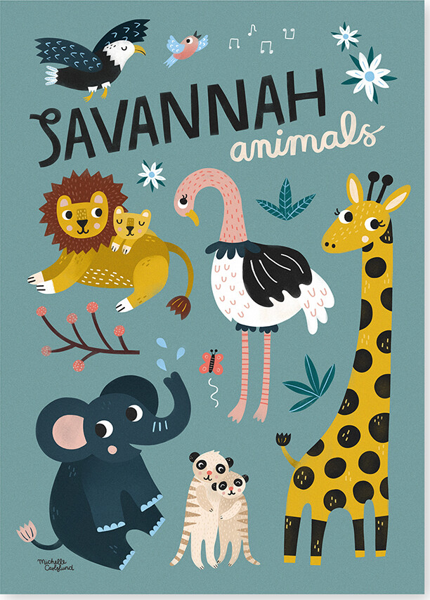 Michelle Carlslund - Plakat - 50 X 70 Cm - Savannah Animals