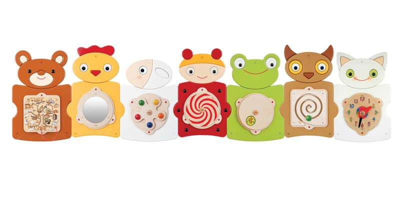 De sødeste og mest charmerende dyrevenner, en hel række af pædagogiske og udviklende aktiviteter for børn ned til 1 år. Kvaliteten er uforlignelig, panelerne holder i årevis, og der er ingen smådele, der kan falde af eller være til skade for små mennesker. Disse søde dyrevenner kan udvikle børns finmotorik, selvopfattelse, syn og nysgerrighed - du kan læse mere om hvert enkelt element ved at klikke på de individuelle dele her i shoppen. Med legetøjet på væggen opnår I flere fordele både for børnenes motorik og for de voksne, der skal tage sig af at skabe udviklende miljøer for børnene i dagligdagen: 1:Legetøjet er altid ved hånden, og der skal ikke bruges personaleressourcer på at tage frem og pakke væk2: Der er altid motorisk stimulerende aktiviteter indenfor rækkevidde for børnene3: Der er ikke smådele, der kan blive væk, gå i stykker eller være til fare for de mindste børn. Det gør vægpaneler yderst velegnede til integrerede stuer i institutioner og til venteværelser, museer, biblioteker, færger o. lign.Fremstillet af birketræsfiner og MDF.