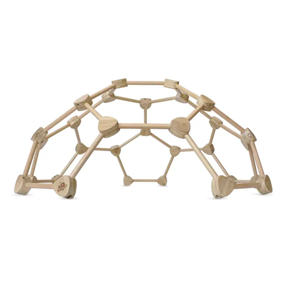 Virkelig lækkert klatrestativ til heldige børn hjemme eller i institutionen eller skolen. Mon dit barn først begynder at kravle rundt på toppen, hænge på undersiden eller bruge kuplen til en huleleg. Det ene øjeblik kan den være en månebase for nysgerrige astronauter. Og i den næste leg bliver kuplen måske til lianer i junglen eller et mål, man skal kaste bolde igennem, hvor de svære vinkler giver fles point.Af bøgetræ og bambus og behandlet med vandbaseret lak. Giv kuplen ny lak ved behov.Tåler ikke at blive efterladt udendørs i fugtige vejr.