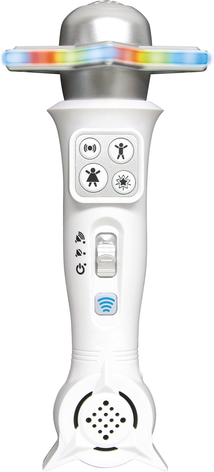 Karaokemikrofon fra Cloudberry Castle med et festligt design. Den har flerfarvede, blinkende lys og stemmeændrende effekter. Perfekt til mange timers sjov. CE-mærket. Ekko-lydeffekt. Kan tilsluttes trådløst til iPhone/ smartphone/ tablet. Anbefalet alder: Fra 3 år. Plastik. Batteri: 3 x AAA (LR03) (medfølger ikke).