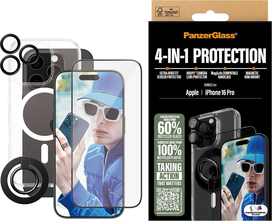Panzerglass - Iphone 16 Pro 6.3'' Pro - 4-i-1 Cover Beskyttelsessæt