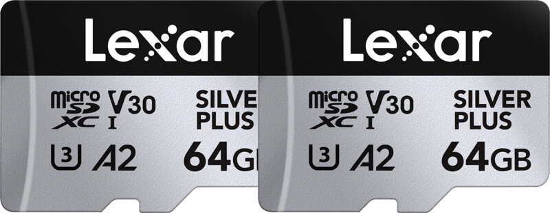 Lexar - Microsdxc Professional Silver Plus Uhs-i/u3/a2/4k R205/w100 (v30) - Silver - 64gb - 2pack